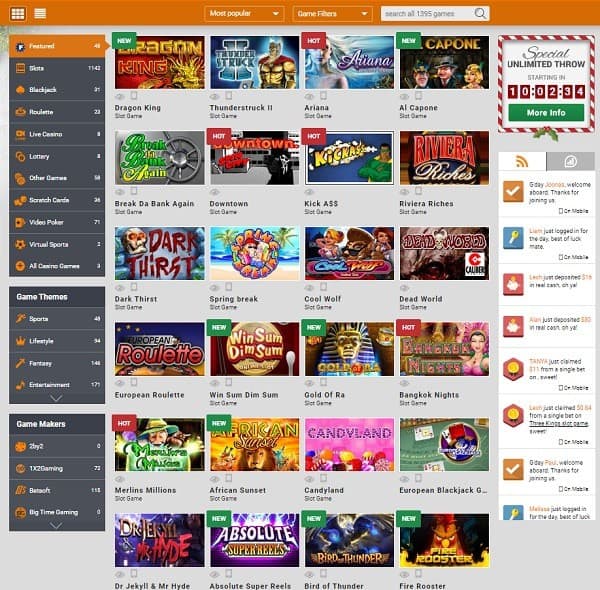 The Casino offers over a whopping 1,300 quality online casino games from some of the most skilled and experienced gaming software providers on the market. While slot enthusiasts will be pleased to find that the Casino’s main emphasis is on slot games, it also offers a decent variety of table games such as: