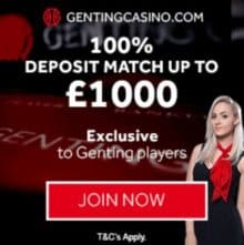 At Genting you will receive up to £1000 as a Welcome Bonus when you make your first online deposit. So deposit £800, receive a £800 bonus, deposit £500, and receive a £500 bonus, and so on. Genting are also well known for their world-class VIP player structure that rewards players the more they play.